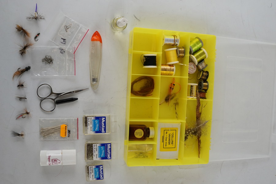 Fiskeflugor och utrustning för flugbindning. A297