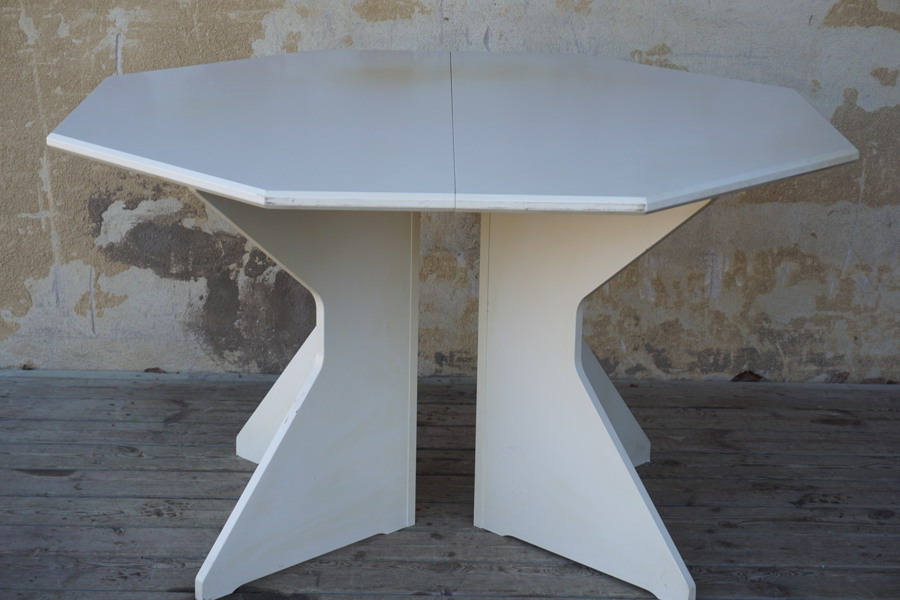 Sexkantigt bord med iläggsskiva vitt. B136