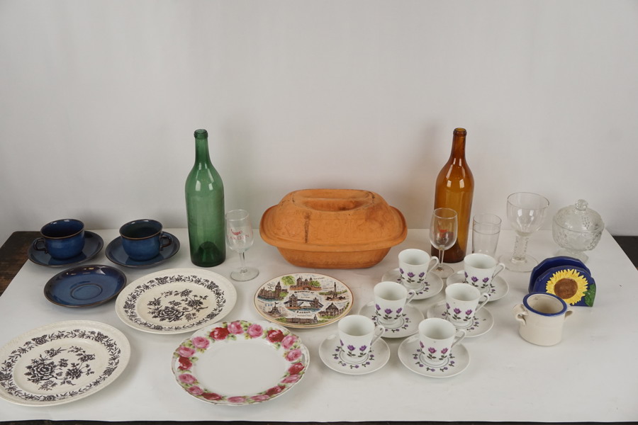 Koppar med fat tallrikar blomdekor m.m. G109/
