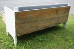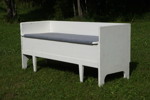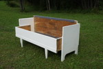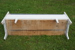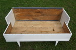 kökssoffa i trä, målad i vitt. Den har spår av användning, men konstruktionen är stadig.