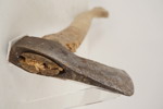 Skaftet är skadat, det finns en beläggning av rost. Det finns ett märke.