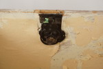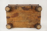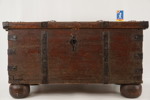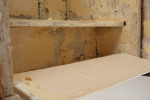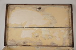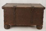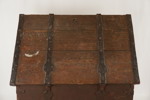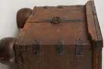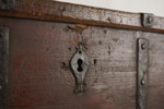 Inuti finns rester av en gammal tapet, och om den tas bort kan man ana en vacker struktur i det gamla träet som kistan är gjord av.