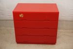 Det finns skador på framsidan av en låda och slitagespår på ovansidan.