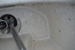 Handfatet har spår av slitage och några små flisor, men det är fullt användbart.