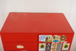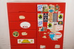Framsidan är täckt med klistermärken, som du kan se på bilderna.