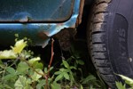 Rostig, visa ekonomiplåtar medföljer. Går att starta och köra.