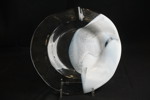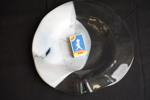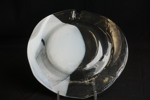 Tallrik i glas med vid del, signerad.