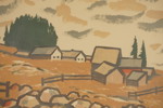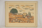 847 Rolf Sandqvist signerad färglitografi (landskap, gårdar) 63x50cm. M19/