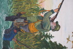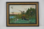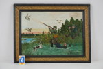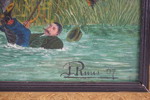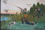 763 Signerad målning på duk (jaktmotiv) 51,5x39,5cm. M1/