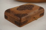Träskrinet har en nyckel. Föremålen är i gott skick.