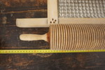 Kavel med mönster, pastakavel, köksklubba i trä.