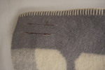 Etiketten har lossnat, men det påverkar inte värmen som filten ger.