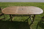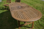 Bordet är utdragbart, som du ser på bilderna, så om någon dyker upp utan att ha sagt till i förväg – låtsas bara att du är glad att se dem, dra ut bordet och sätt dem lite längre bort... så kan du fortsätta njuta av dagen i lugn och ro.