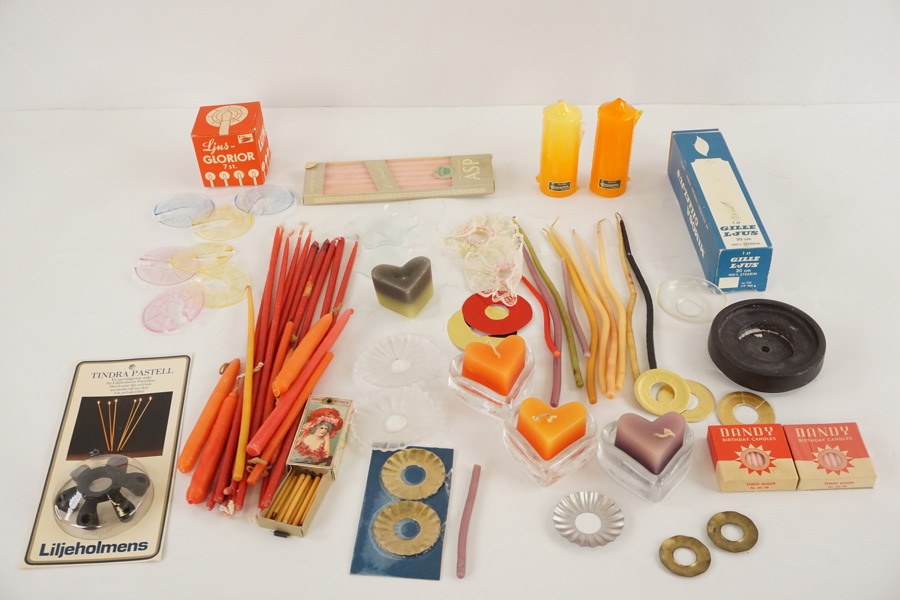 Gamla ljus, ljusglorior och tillbehör till ljus. A264