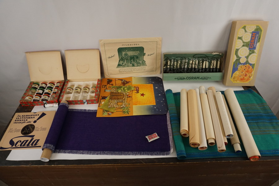 Gamla marmeladburkar, elektriska ljus från Osram & julaffischer mm. BC278