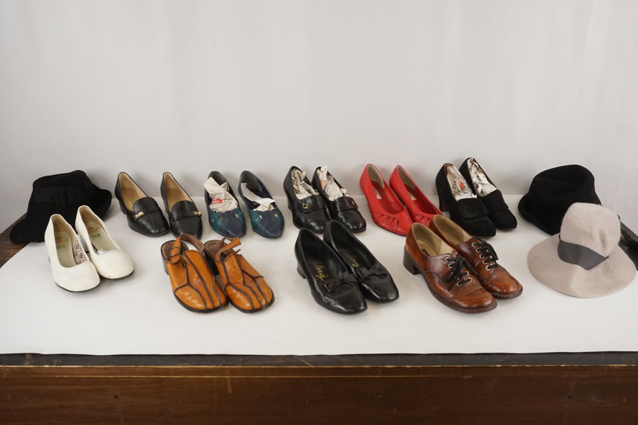 Äldre damskor och 3 hattar. BC103