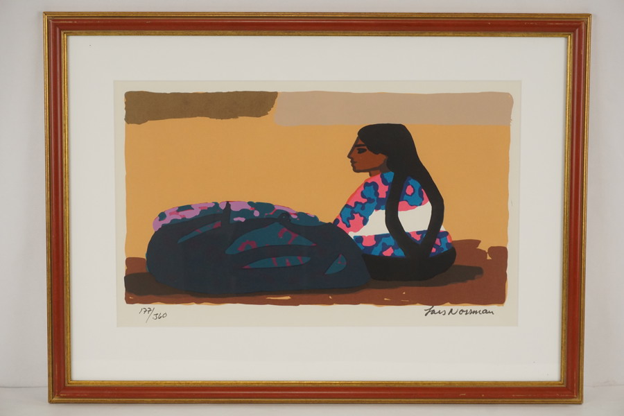 Litografi Lars Norrman, motiv sittande kvinna. M5