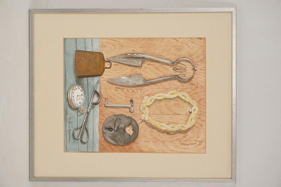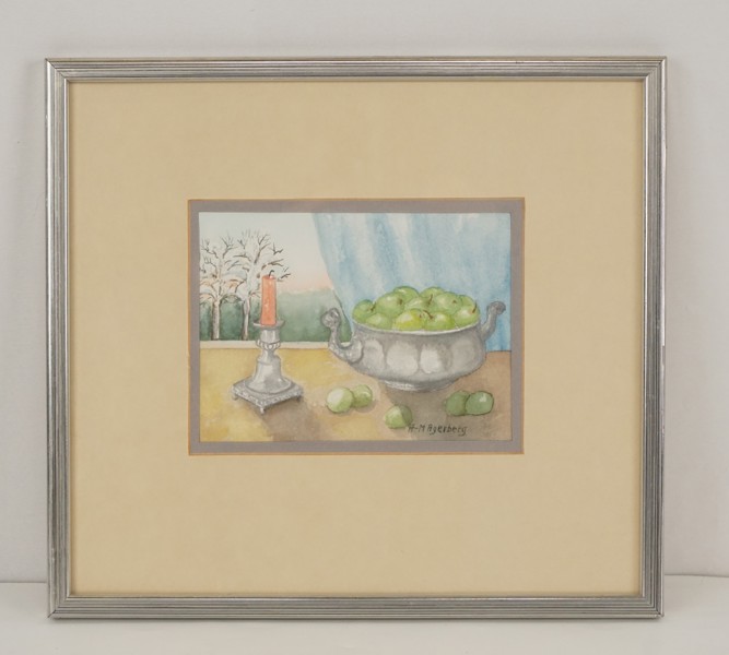 Akvarell A-M. Agerberg, motiv druvor i skål. M24